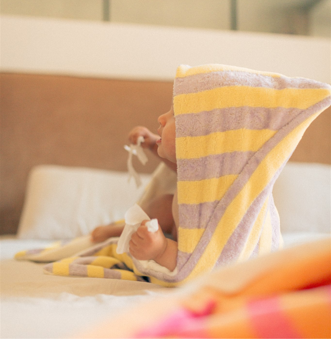 Notre cape de bain lilamonade vous séduira par sa qualité et sa douceur.
