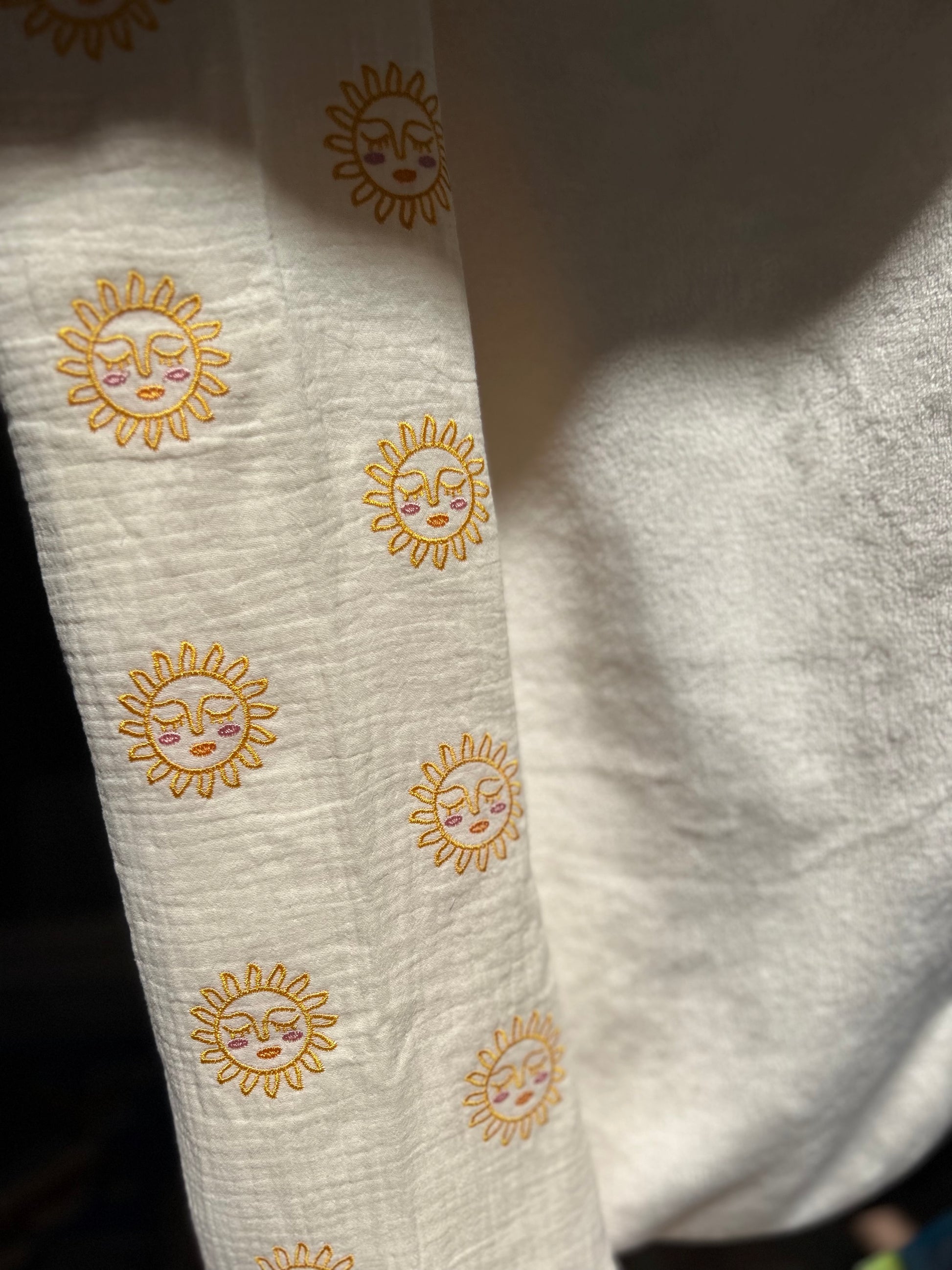 La couverture cocooning de rêve pour les sorties en poussette avec bébé! Des petits soleil pour vos petits soleils 🌞